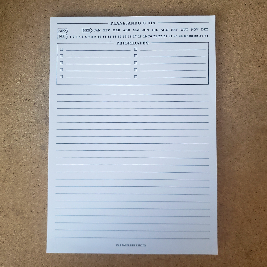 Em formato de bloco de anotações com folhas destacáveis, esse planner une simplicidade e versatilidade para você organizar suas tarefas diárias, com bastante espaço para suas anotações.