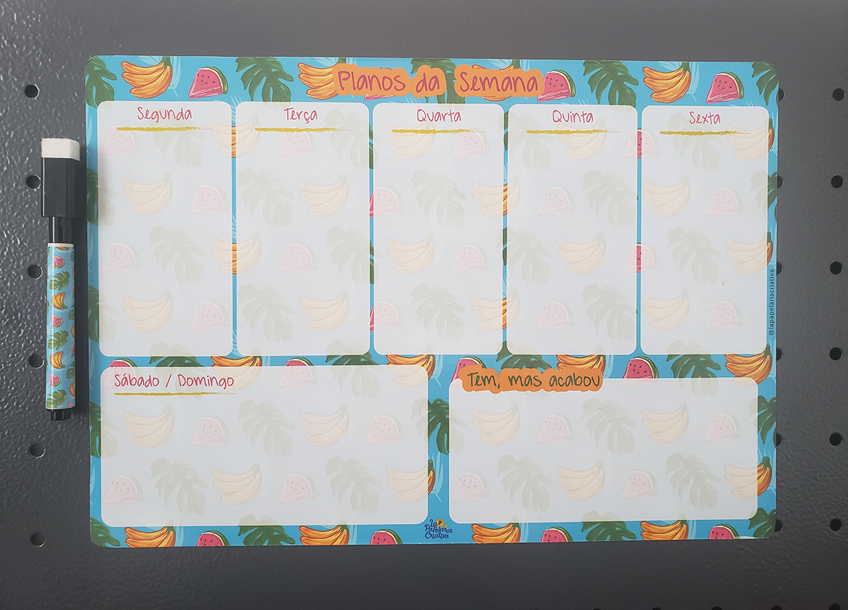 Este prático planner de painel foi desenvolvido pra facilitar ainda mais seu dia a dia! Com uma película de imá no verso, este planner magnético fixa bem em superfícies metálicas, como painéis e até a sua geladeira!